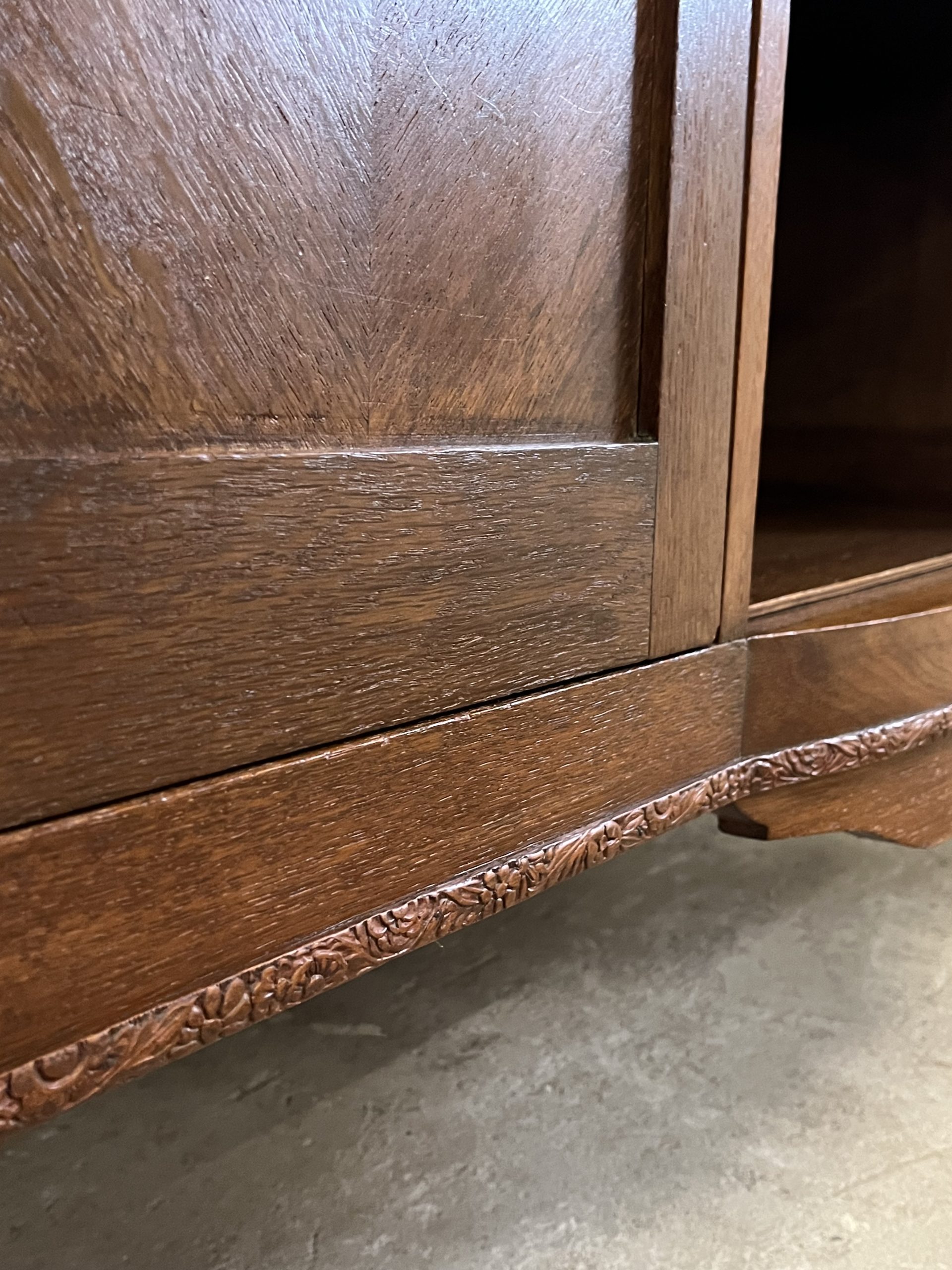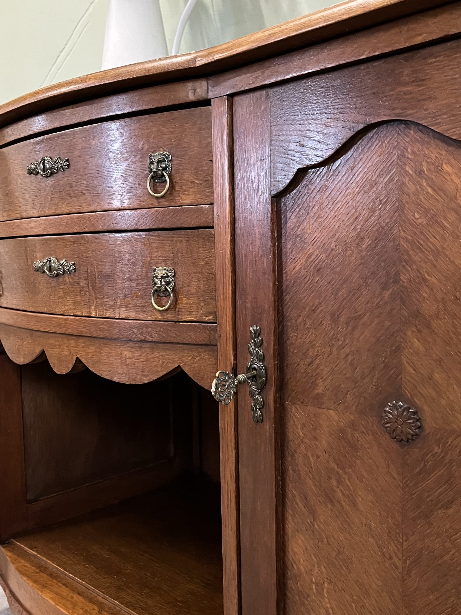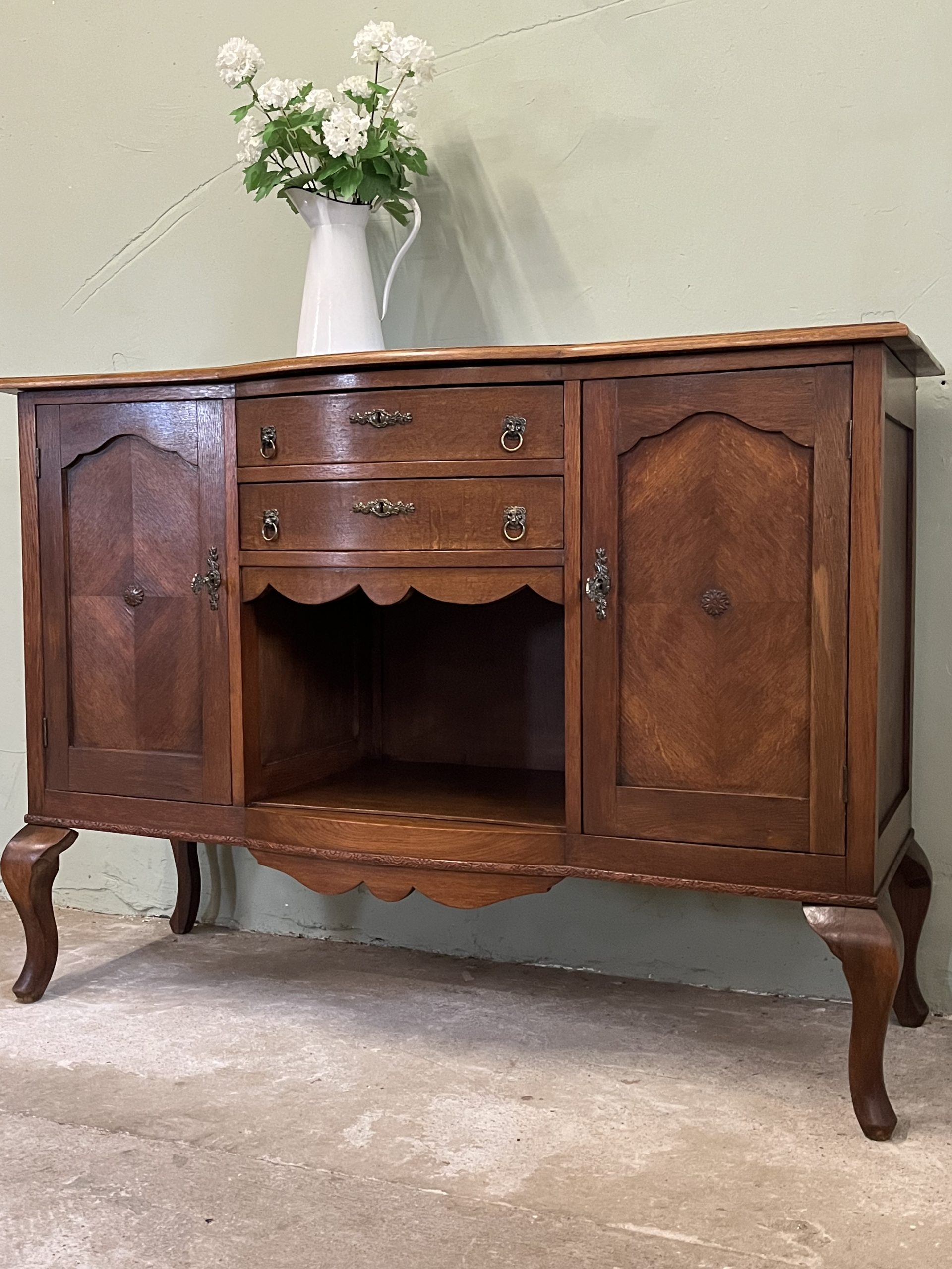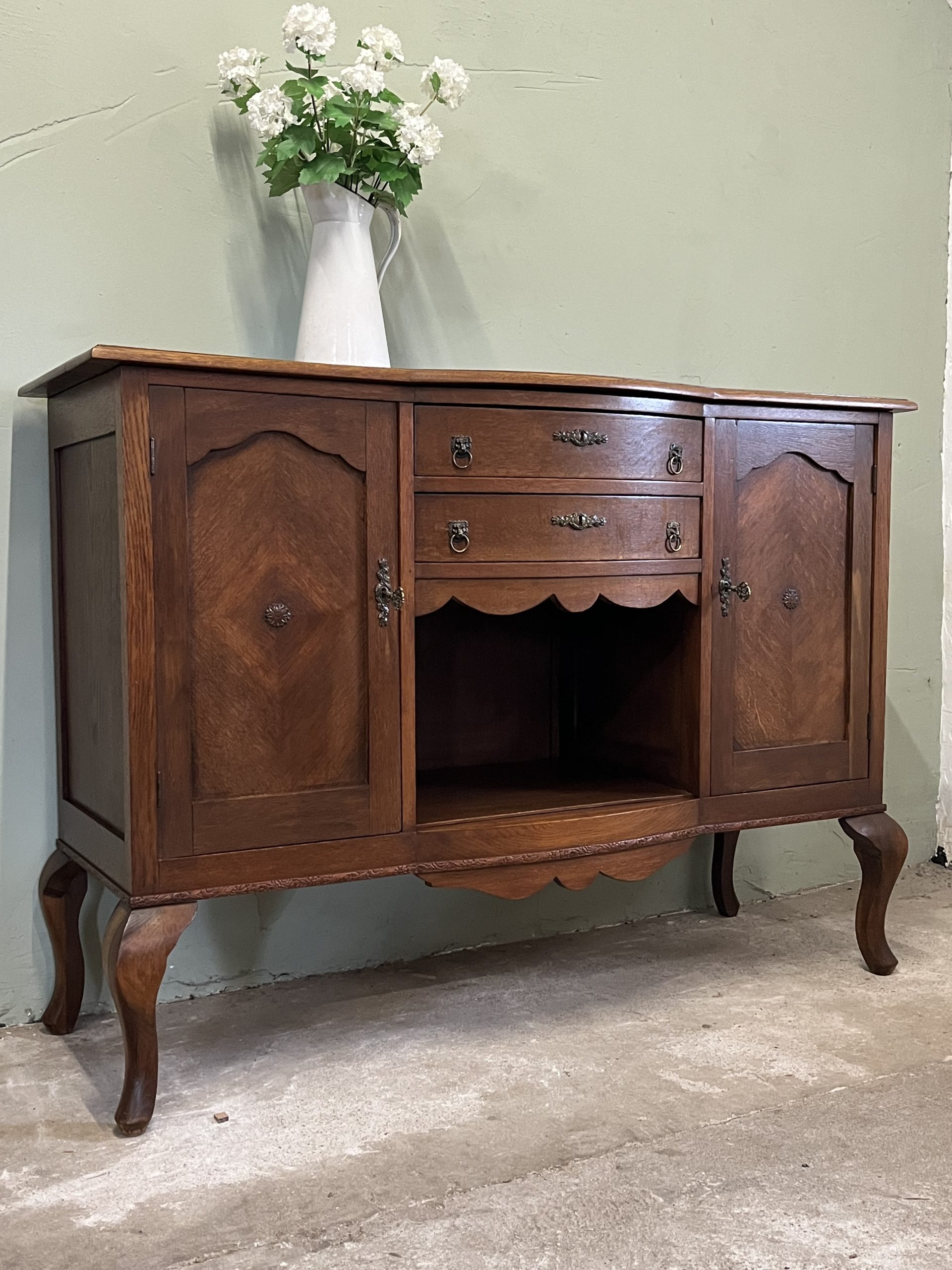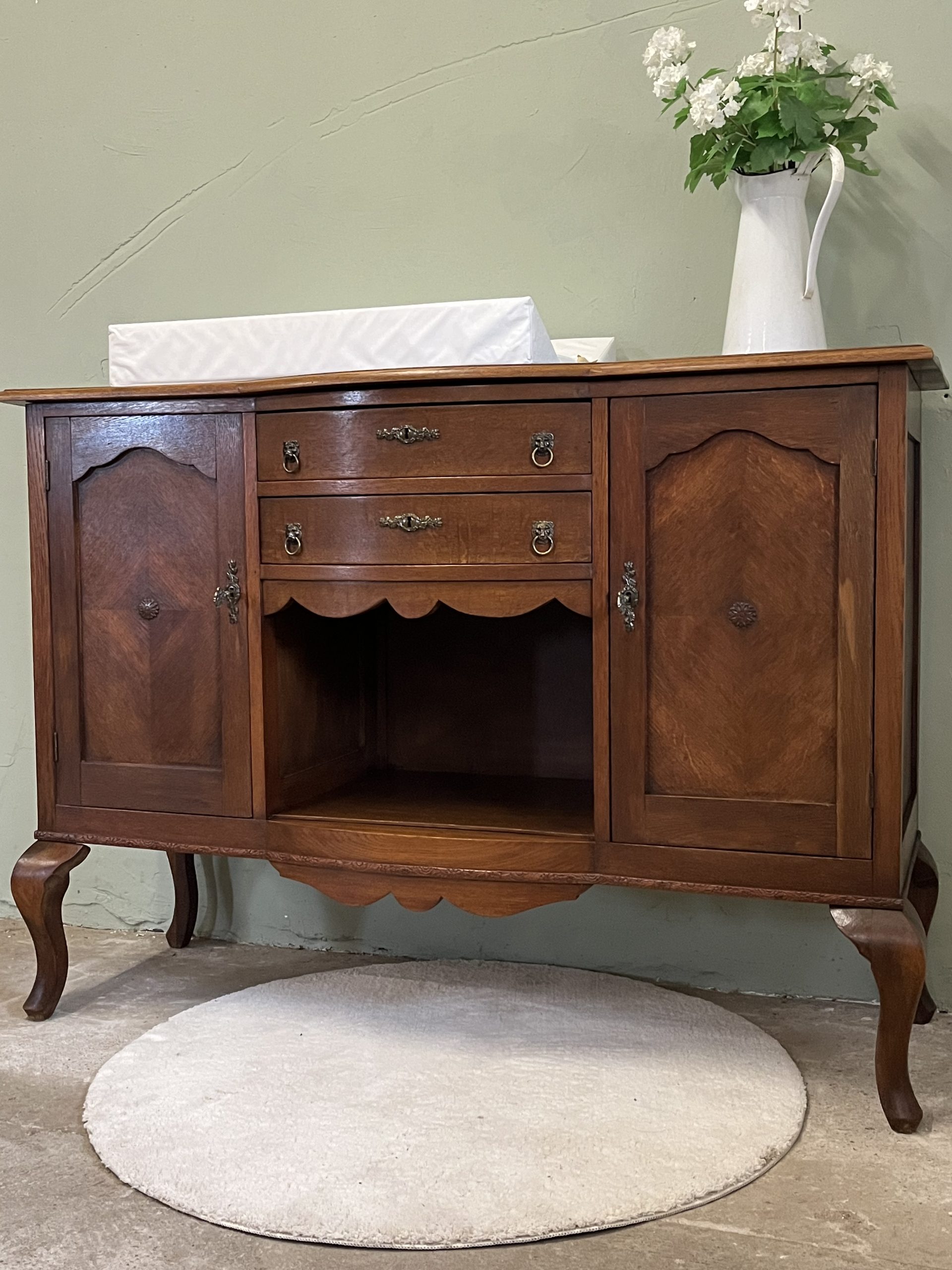 De twee deurtjes met verfijnd paneelwerk en het mooie houtpatroon vertellen een verhaal van vroeger. De lades met hun originele handgrepen zorgen voor nét dat beetje extra charme.